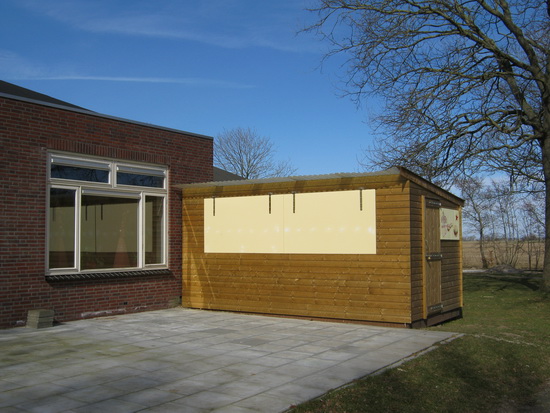 Hier ligt/staat de trots van Dorpsbelangen Noordhorn, het dorpshuis in de voormalige Willem-Lodewijkschool. Nog steeds het “NL Doet” spandoek aan de gevel….
