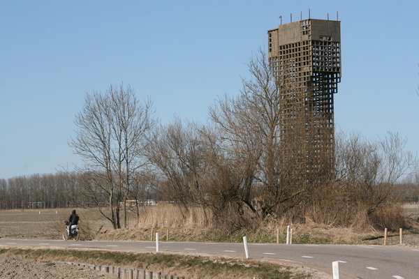 Is dit niet zo’n BB-uitkijktoren, bij Warfstermolen? Gek geval, bouwpakket waarvan niet alle delen voor handen bleken…. En slopen kost ook geld…. Of heeft het bouwsel inmiddels de monumentenstatus verkregen? Stond er trouwens aan de Zuiderweg bij Zuidhorn ook niet z’n toren?