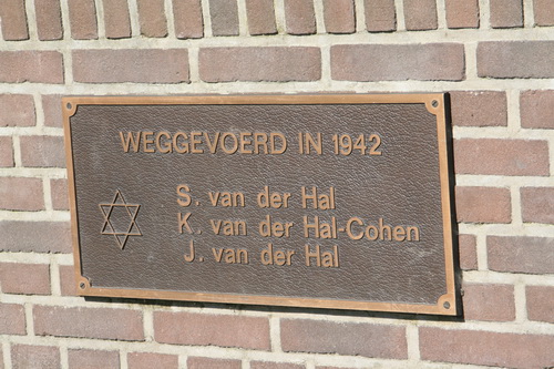 Dichter bij de straat een aparte plek, ter overdenking. Op dit bord de weggevoerde Joden, op een ander de niet-Joodse slachtoffers van de Duitse bezetters. Voornaamste vraag in mijn gedachten: Familie van de Zuidhorner Van der Hal? Is op te zoeken…