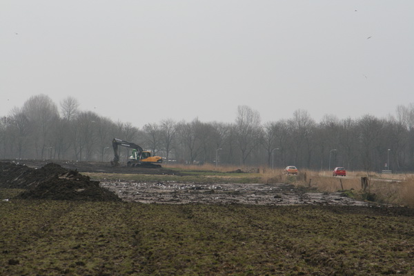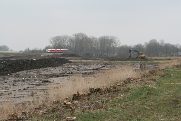Grondwerkzaamheden aan de noordkant van het kanaal, meteen te zien, als je onder de spoorbrug doorkomt…. De bult die ontstond door het graven van het kanaal in de dertiger jaren, wordt nu weer afgegraven….