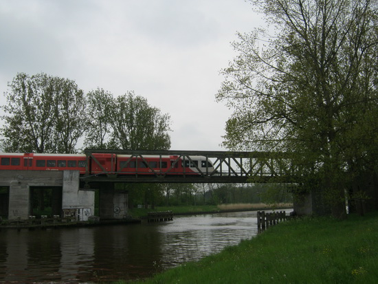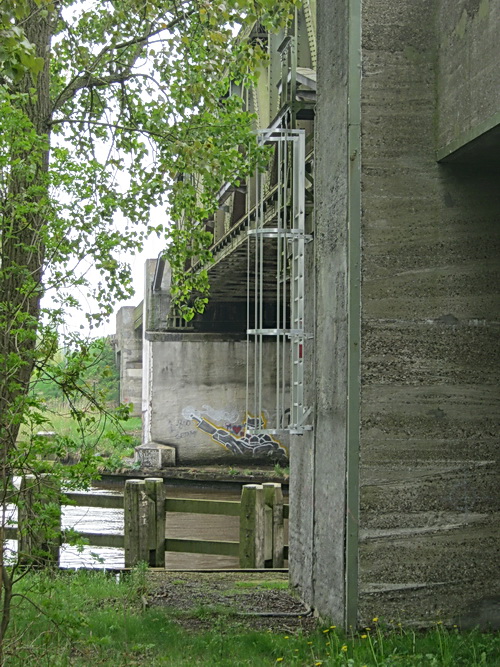 Toch nog iets nieuws aan een oude voorziening, de spoorbrug (die binnen twee jaar wordt vervangen): Een metalen vluchttrappetje?