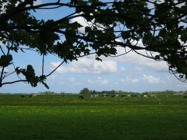 Nog zo’n plaatje dat me om meerdere redenen bekoort! De koeien in de wei vooral en de gele accenten van de paardenbloemen, de “diezels”, de “hoanetoppen”…..
