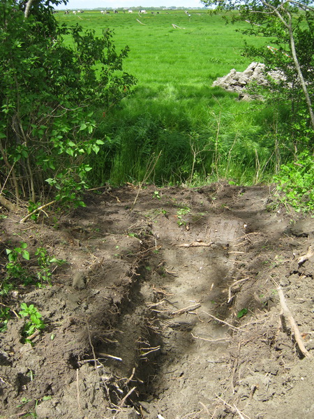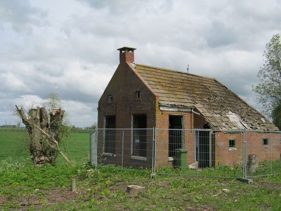 Doorstappen, Jan! Via de Spanjaardsdijk Noord richting betonpad naar Noordhorn. Het droevig stemmende huisje op de hoek is nog niet van status veranderd. Nee, hier ziet zelfs de meest rechtgeaarde kraker geen brood in…. Om depri van te worden, gauw verder!