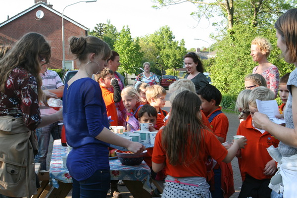 Eerlijk gezegd had ik niet eens meer gedacht aan de Avondwandelvierdaagse (Loopgroep Zuidhorn, mijn verontschuldigingen!) …… Een zonnige namiddag en vooravond, meer activiteit voor het huis dan normaal. Nieuwsgierig geworden zie ik een efficiënt verfrissingsstation van GBS “De Brug” ontstaan, met als een van de drijvende krachten buurvrouw Mariska en heel wat helpende handen om haar bij te staan, klasse! Camera erbij, plaatjes schieten, impressies van “zonnige gezelligheid”: