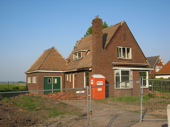De dakpannen van Langestraat 11 zijn inmiddels verwijderd, voor een deel (of geheel?) kapot op de grond…..