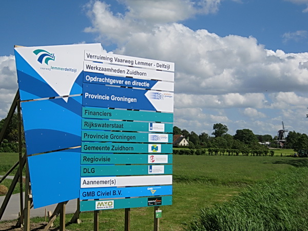 Op de hoek van de Langestraat Noord en de N355, bij de bushalte die zelden als bushalte wordt gebruikt, is een groot informatiebord geplaatst als opvolger van het sponsorbord van de Dorpsbelangenfeestweek. Het gaat om informatie over de verbetering vaarweg Lemmer-Delfzijl en dat betreft zowel de wegverlegging van de N355 als de bochtverruiming in het Van Starkenborghkanaal aan de westkant van de spoorbrug. (En later de vervanging van zowel de oude spoorbrug als de hefbrug tussen Noord- en Zuidhorn). Of iemand juist op déze informatie op deze plaats zit te wachten, is de vraag. Bovendien, er staat natuurlijk weer “Zuidhorn” waar ook “NOORDHORN” zou moeten staan….. (Is door de Provincie gemakkelijk te corrigeren!):