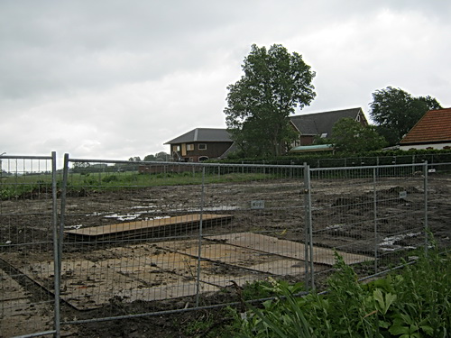 Wordt hier het speciale podium gebouwd voor de officiële aftrap van de N355-verleggingswerkzaamheden? Gaan Gedeputeerde Boumans, burgemeester Swart en Waterstaatdirecteur Schouwstra hier een optreden verzorgen, geheten “Startsein Werkzaamheden”? Nou nee, ik denk dat hier de noordelijke oeververbinding tussen nieuwe brug en N355 komt. Of iets dergelijks… Het werk is dus al lang begonnen, waarom die bobo’s altijd te laat komen…..