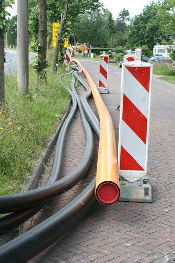 Als ik ben rondgelopen langs de paarden van Piet Bos en het kanaal, tref ik op de parallelweg slangen aan die gezelschap hebben gekregen van een gele buis (de huiskleur van HAK)….