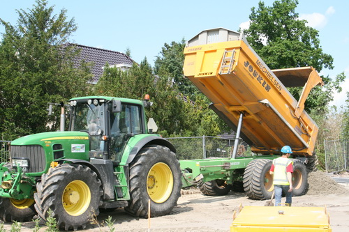 ….en een andere vrachtwagen, met op afstand bedienbare laadkleppen, haalt weer iets anders op… Zand? Afgegraven grond?