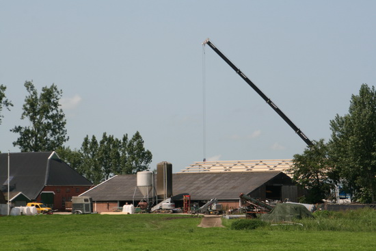 Aan het eind van de Mokkenburgweg rechts de boerderij van de familie De Jong. Er wordt een schuur bijgebouwd….