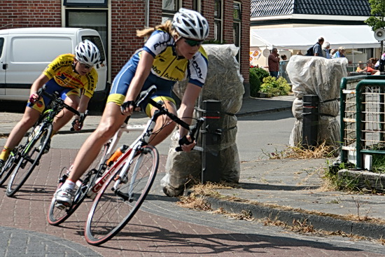 Te warm? Niet voor het verwerken van de indrukken van zaterdag 20 juli jongstleden… Waren we al aan het inrijden begonnen bij de Junior/Nieuwelingen (vrouwen)? Gaan we daarmee verder….. En met Zuidhorner Kris Atema, deel uitmakend van de Bike4Air-formatie. (Hij staat ook op de affiche van de 8ste Ronde van Noordhorn). Kris was al vroeg aanwezig om het parcours als renner nog eens kritisch te bekijken. Hij rapporteert twee auto’s in de Langestraat (van vakantie vierende aanwonenden?), maar die zullen vast alsnog zijn verplaatst…