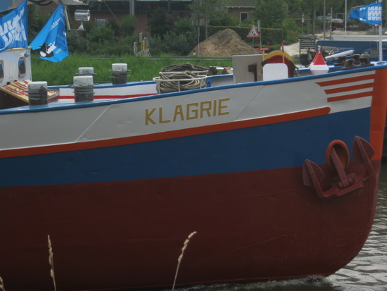 Vlak achter de Cornelis sr vaart de ‘Klagrie’. (Vanwaar die naam?) Deze boot is gebouwd in FRankrijk in 1950, tonnage 968. Lengte 73 meter, breedte 8,15 meter, diepgang 2,81 meter.