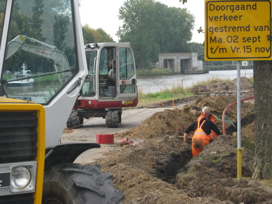 Aan de tekst op het bord te zien blijft dit weggedeelte tot in november afgesloten. Kom ik nog wel eens terug met mijn lutje Canon…..