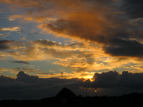 Zonsondergang, maar weer anders dan de voorgaande…. Daar waar de Langestraat Noord uitkomt op de N355…