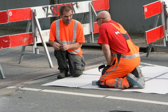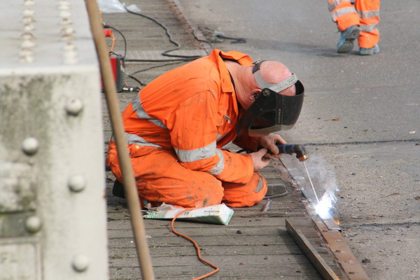 Twee Oranjefans die een deel van het brugdek vernieuwen. Is het nog de moeite waard? De brug zou toch uiterlijk 2015 worden vervangen???!