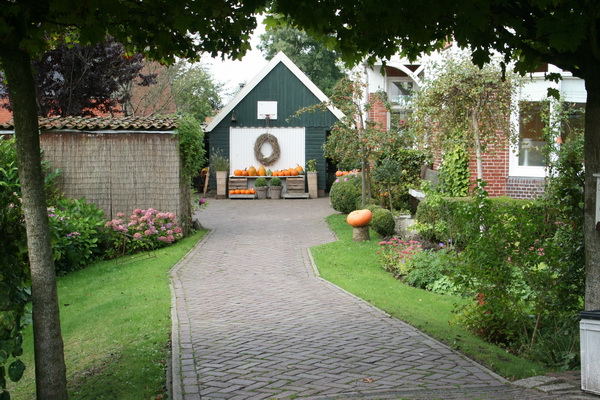 En voorbij het pompoenenstalletje zien we in de verte de gestremde brug. Inmiddels al weer verleden tijd….. Time runs!