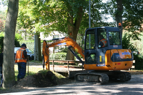 Pal naast de laatste bocht van de Langestraat ligt een enorme bult aarde, waar een grijper mee “aan het spelen” is… Bedoeling? Op de Langestraat Zuid neerleggen om het verkeer ‘overtuigend’ om te leiden?