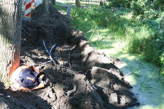 Kabelgaten volop, en anders worden er wel nieuwe gemaakt of oude heropend… En niet alleen nabij de plek waar de tunnel wordt gebouwd! Hier bezigheden aan de Langestraat-Zuid… aan de westkant van de weg….