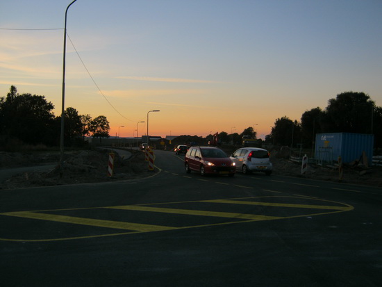 Dan is vandaag alsnog de omleidingsweg van de N355 in gebruik genomen en werd de oude aansluiting van de Langestraat Zuid op de N355 afgesloten. Nog niet dat iedereen zich het realiseerde, het is even wennen… Of zijn er toch chauffeurs/coureurs die de verandering bewust negeren? Wat me vanavond ook opviel, is dat er vele autorijders zijn die de nog open verbinding van de Langestraat naar de parallelweg benutten. Geen probleem, als het met de nodige omzichtigheid gebeurt… (Als je sommigen roekeloos bezig ziet, dan “moet” dat haast wel tot ongelukken leiden! Of hebben al die coureurs een engeltje op hun schouder?)