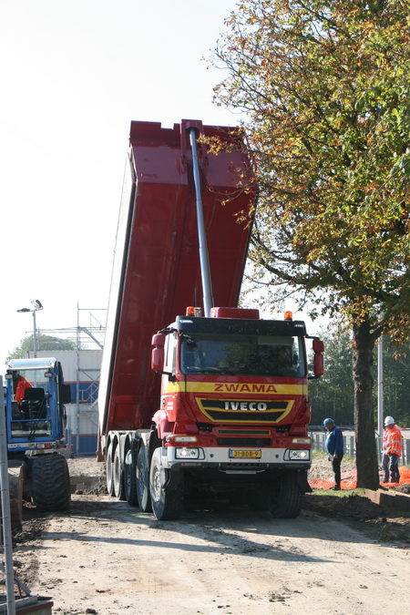 En warempel, de volgende Zwama-kieper lost zijn lading aan de noordkant… Hoog tempo! Zo is het voorlopig genoeg, de grijper gaat de boel fatsoeneren.