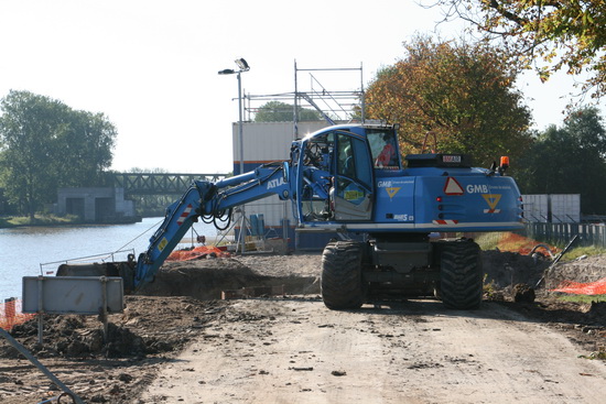 Woensdag 2 oktober 2013, voorlopig de laatste echt zonnige dag? De harde, toenemende wind doet weersverandering vermoeden. Vandaag nog prachtig weer voor de verscheidene weg- en kanaalwerkers. Als kijker en kieker kan ik te kust en te keur gaan: Tunnelgebied, Mokkenburgweg, kanaalverruiming tussen spoorbrug en Tolhek, paal 15 bij Koopman Transport waar de gasbuis binnenkort een lagere ligging in de kanaalbodem wordt gegund….. Prachtig de digitale fototechniek! Kan me nauwelijks meer voorstellen hoe dat destijds ging met fotorolletjes…..