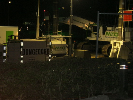Vanavond langs het tunnelterrein, inmiddels afgeschermd met hekken. Zie ik ineens de ANWB-wegwijzer in niemandsland staan….