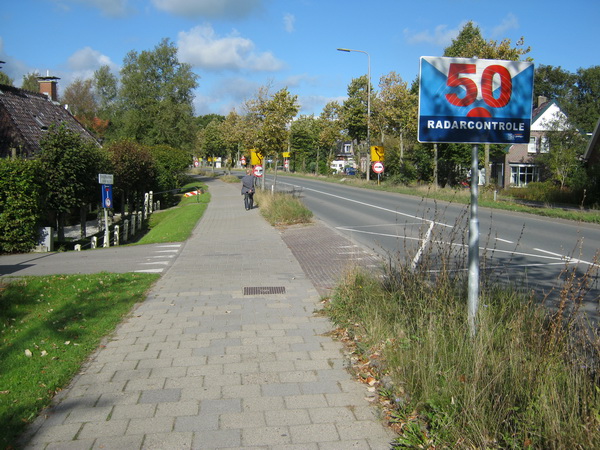 De N355 vanaf de brug noordwaarts, richting dorp Noordhorn. Een verkeersbordenwalhalla…. Of die borden allemaal een functie hebben?