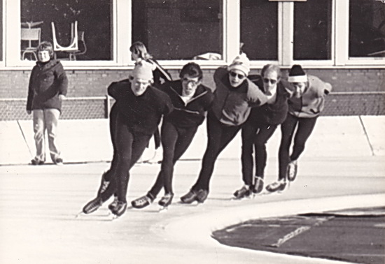 Toch blijkt zwemmen niet de grootste passie van Jan Jansma! Dat is, hoe kan het ook anders als geboren Fries: het schaatsen! “Wanneer dat is begonnen? Toen ik een jaar of 8, 9 was, niet eens zo heel vroeg. Ik kreeg toen een paar schaatsen als verjaardagscadeau en oefende op stukken ondergelopen land. Ik had het snel onder de knie. Het waren de bezettingsjaren, er was toen vaak natuurijs en er was tijd, doordat de school halve roosters draaide of gesloten was…!” Dat leidt in februari 1956 tot deelname aan Jan zijn eerste Elfstedentocht. “Het was bijna 20 graden onder nul bij de start! We mochten ons opwarmen bij de autospuiter…. De startplaats werd verlicht door middel van fakkels. En daar gingen we, de donkere nacht in!” Jan heeft schaatsen onder zijn militaire kistjes, hij draagt een sportcolbertjasje, een wollen trui, kranten voor de borst, muts op. Om half twaalf is hij op de helft. “Bij Workum kregen we gratis Brinta, heb ik te veel gegeten… Maar de finish haalde ik zonder verdere problemen!”