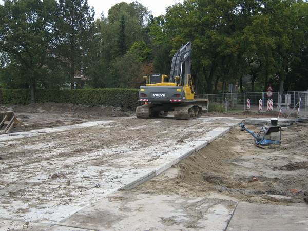 Een van de laatste betonplaten deze vrijdagmiddag. Maandag maar voltooien. Ik zie het nog niet voor me, die nieuwe verkeerssituatie. Eerst zien…