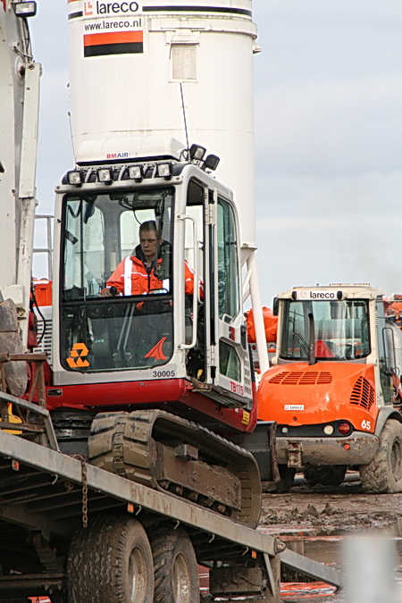 Hier zijn de kleurenadviseurs van GMB te gemakkelijk aan voorbij gegaan. Het Lareco-oranje en het Wieringa-rood doet als dominante combinatie zeer aan de ogen…. En als de middenman nu maar zijn blauwe helm had gedragen….