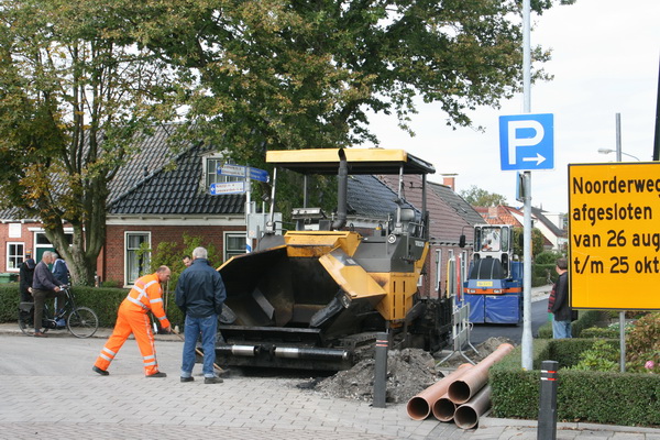 Afsluitend etappe… De asfaltering van de Noorderweg, waar de nieuwe riolering zijn beslag krijgt… Opnieuw: werkers en kijkers! (En kiekers)