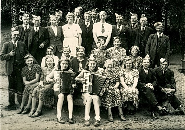 “In Noordhorn Nu staat een foto van oud noordhorners. Tot mijn verbazing staan mijn ouders er ook op. Ik herken ook bakker Menko v.d. Sluis en nog een paar. Ik zal ook mijn zuster de foto toe sturen en vragen naar de namen . Die is 5 jaar ouder dan mij. Mijn ouders zijn Aldert Bakker en Dieuwerke Bakker – de Vries. Het zijn bovenste rij nr.4 en 5 en bakker V.d. Sluis is nr.11 . Is het mogelijk om deze foto in een groter formaat te krijgen ?” Ja, dat is altijd mogelijk, zo’n grotere foto (en Gerrit Bakker weet dat inmiddels).