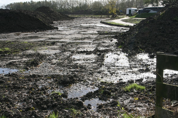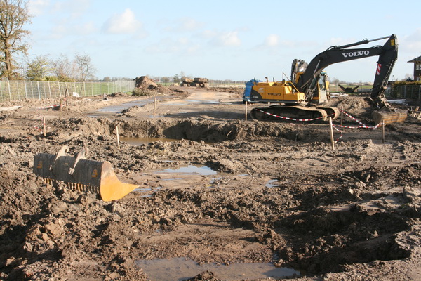 Het tunnelterrein, niét de plek waar de rotonde komt! Op de achtergrond de woningen van Wiegersma en Kruizinga.