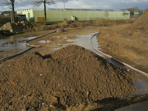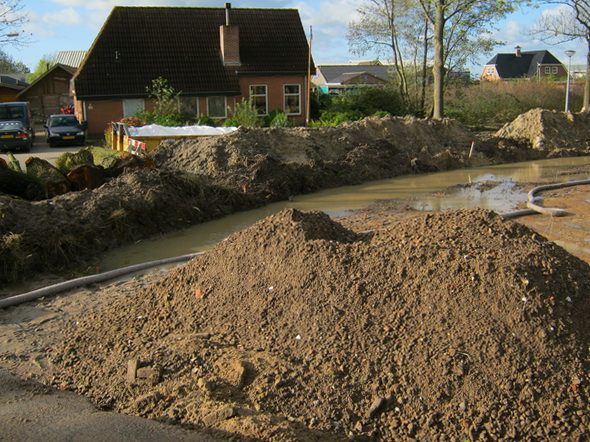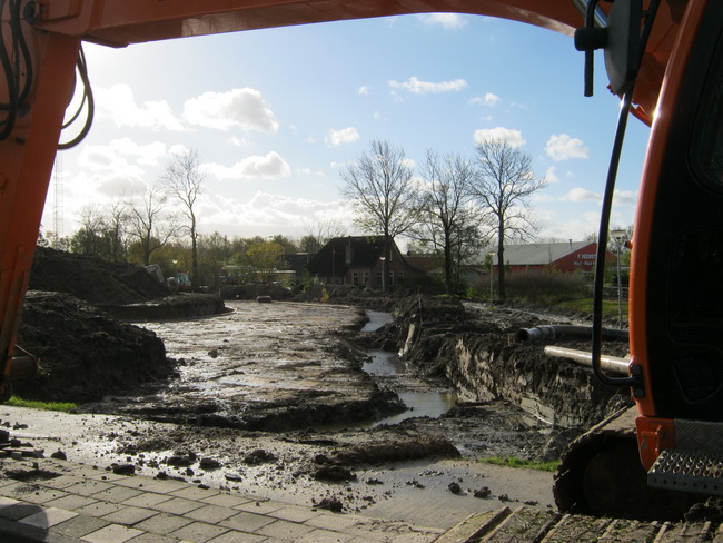 Intensieve activiteiten voor de deur van huize Hekkema aan de Mokkenburgweg, “elke werkdag een nieuwe voorstelling…” (De familie Hekkema vindt trouwens dat ze minder last hebben van het veranderde verkeersbeeld met de diverse omleidingen dan van het niet of nauwelijks nakomen van gedane beloften door de uitvoerende instanties….)