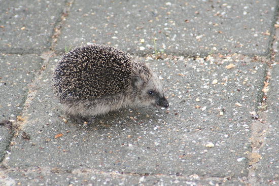 Ben ik nog niet eens buiten, is het eerste onderwerp al in beeld: Een tamelijk kleine egel die de laatste tijd wel vaker bij ons ‘buurt’, ook overdag. Nee, nog niet geneigd tot winterrust… Komt ook door de slordige manier van eten van onze tuinvogels die nog wel eens wat voor andere belangstellenden willen overlaten…