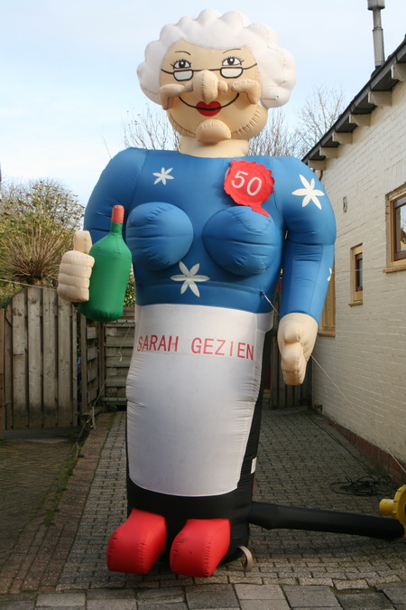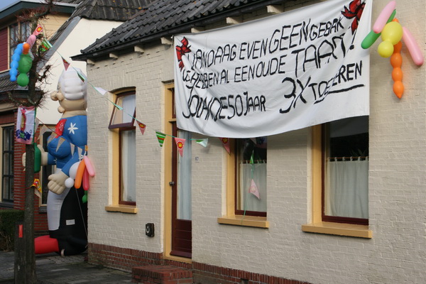 Vooraan in de Langestraat (Midden) het volgende oponthoud! Jolanda de Boer is verrast met een Sara! Ze is 50 geworden (Jolanda, gelukgewenst!) en dat willen Wilt en de kinderen weten ook!