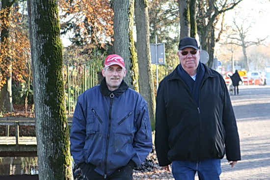 En wie hebben we daar? Twee gerenommeerde Noordhorners, Ide en Dik, samen aan de kuier. Nee, ik kan wel weer naar huis, zij hebben al even voor mij gekeken… Alles gaat zijn gangetje, het kranenballet wordt goed uitgevoerd, etc. Voor alle zekerheid loop ik toch maar even door….