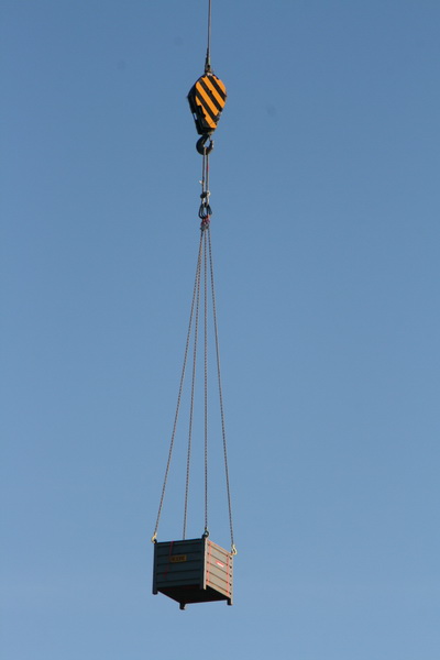Aan de haak van de giek (geen arm, geen hals, aldus Frits uit de Schippersstraat) hangt een kist o.i.d. Een speelgoedkist? Iets dat met Sinterklaas te maken heeft? Waarschijnlijk is het voor de zichtbaarheid… Of???