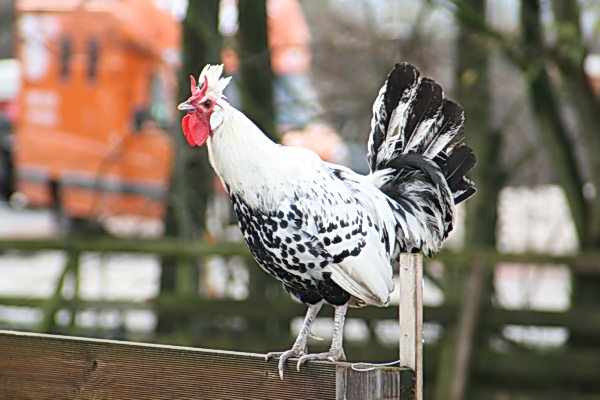 Frits Mesker (Schippersstraat) is niet alleen een geïnteresseerde en verdienstelijke Nikon-kieker, hij houdt ook bijzondere kippen die af en toe de vrijheid nemen om op de omheining te gaan zitten, een kunst op zich.