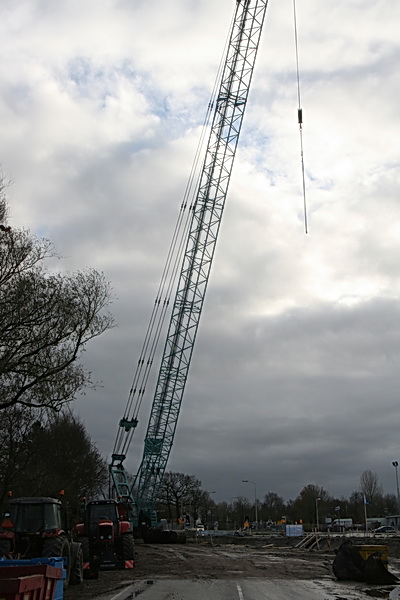 Vanaf dit standpunt aan de noordkant van de tunnel is de groene super kraan niet helemaal in beeld te krijgen, zou ik meer achteruit moeten….