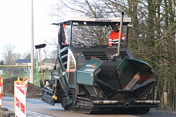Het centrale thema van dit weekeinde in beeld: Asfalteren! ‘De jongens van OH’ zijn bezig op de aansluiting van de noordelijke N355-tak. (Ik sta met mijn rug naar de rotonde, even voor alle duidelijkheid…) Je treft hier de oranje kleur aan van Wemac, maar ook het grijs-groen-rood van moedermaatschappij OosterhofHolman! Anne Adema weet hier meer van: