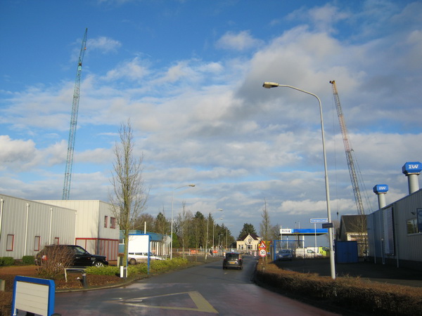 Vandaag, maandag 6 januari 2014, zijn de werkzaamheden hervat voor wat betreft de wegomlegging N355. Nee, ik ben niet meteen uitgebreid gaan fotograferen… Niet meteen op de lip zitten van de werkers, die net terug zijn van hun veertiendaags Kerstreces. Eén kiekje, ten bewijze van de werkhervatting… De kranen, ze hebben hun kop weer opgestoken…: