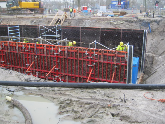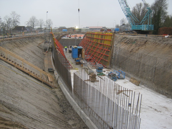 Vanmiddag ondanks de indringende, vochtige kou toch een rondje gemaakt langs o.a. de beide tunneldelen aan weerskanten van de N355-afslag bij de Langestraat Zuid. Intensief werken aan de bewapening tegen de bekistingswanden aan, dat valt het meeste op. De betonpomp was al weer van het podium verdwenen. Aan de oostkant werd er ook gewerkt aan het keldergedeelte, maar dat is niet meer goed te zien vanaf de buitenkant…… Enkele foto’s ter illustratie: