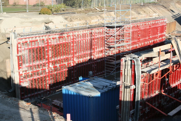 Tunneldeel 4 met de gestorte wanden, beide nog bekist. Bij beide uiteinden zijn de dilatatie banden goed te zien. Fré Bisschop geeft daarbij nog de volgende aanvulling: