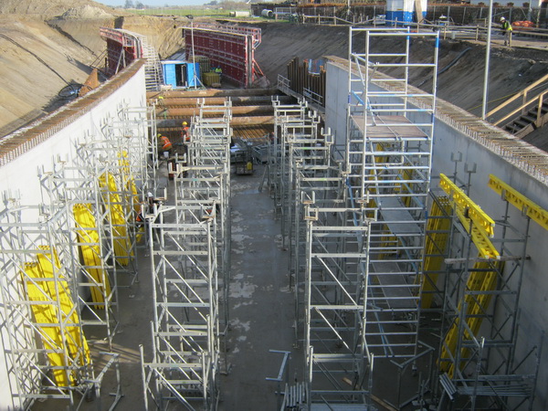 De tunnel is, voor de uitvoering van het werk, opgedeeld in 10 elementen, ook wel moten genoemd. Moot 1 en de moten 6 tot en met 10 van de tunnel zijn open, zonder dak. De komende week wordt gewerkt aan de ondersteuningsconstructie van moot 4. Deze constructie is nodig om het betonnen dak te kunnen storten. Bij moot 3 wordt verder gewerkt aan de wandbekisting. Donderdag wordt de vloer van moot 1 gestort.