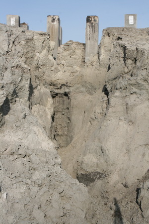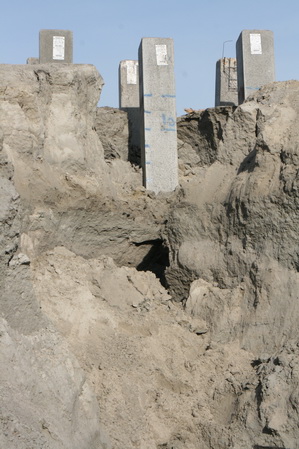 Aan het talud moet nog wel even worden geknutseld om de schade veroorzaakt door het heien te herstellen…
