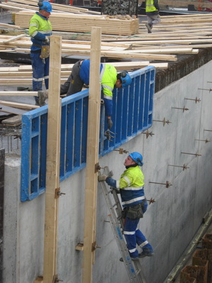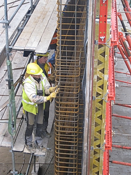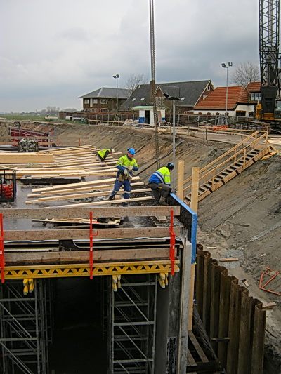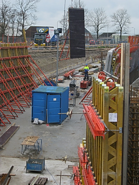Terug bij de tunnelkuip oost, bij de zwevende bekistingspanelen, bij de monterende timmerlui…