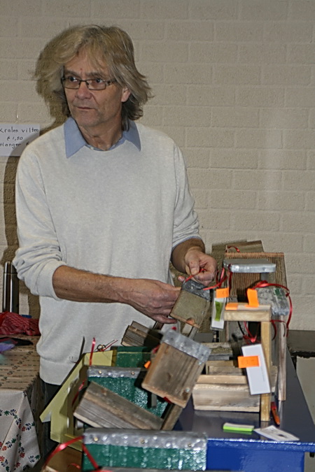Herman (en zijn schaduw) en zijn huisvlijt: nestkastjes en voederbakjes! Nee, hij heeft zijn vondsten met zijn metaaldetector niet uitgestald….
