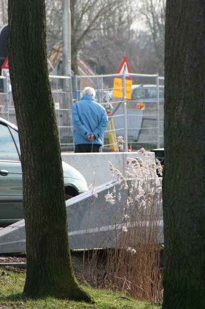 En kijk eens, wie daar volop van het voorjaar geniet? Midhorncorrespondent en wegverleggingswatcher Jan Thijs de Haan, de grote kleine Canon achter zijn rug verbergend. Zo te zien heeft Jan Thijs voor vandaag voldoende vastgelegd, op huis aan!