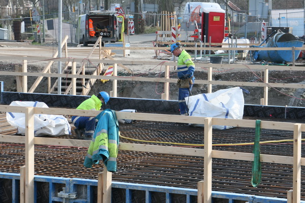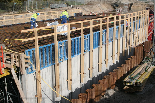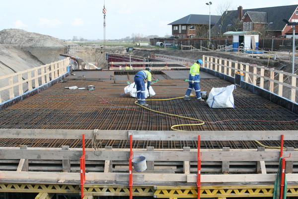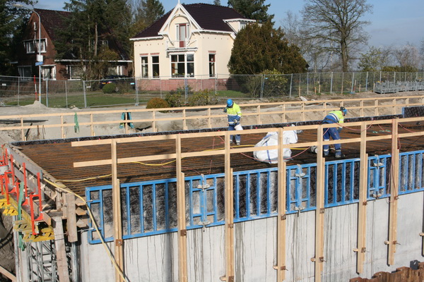 Als het beton gestort is, en gehard, zal er wel spoedig aan de zijkanten wat gebeuren. De metalen steunplaten een de boomstammen moeten worden verwijderd, evenals nog aanwezig materiaal. En dan opvullen met grond, veel grond. Of vergeet ik iets?
